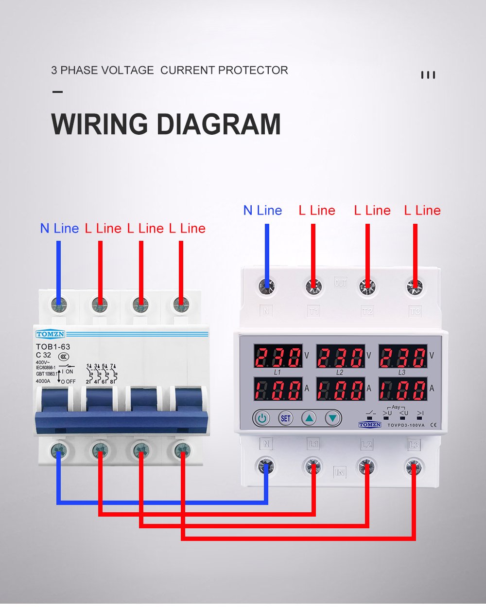 Reliable Electric is offering : 3 Phase 100A, VA Control Device, TOMZN Din rail, adjustable Over Under Voltage, current limit protection, Relay, VA Protector 4P By Reliable Electric is available at economical rates.