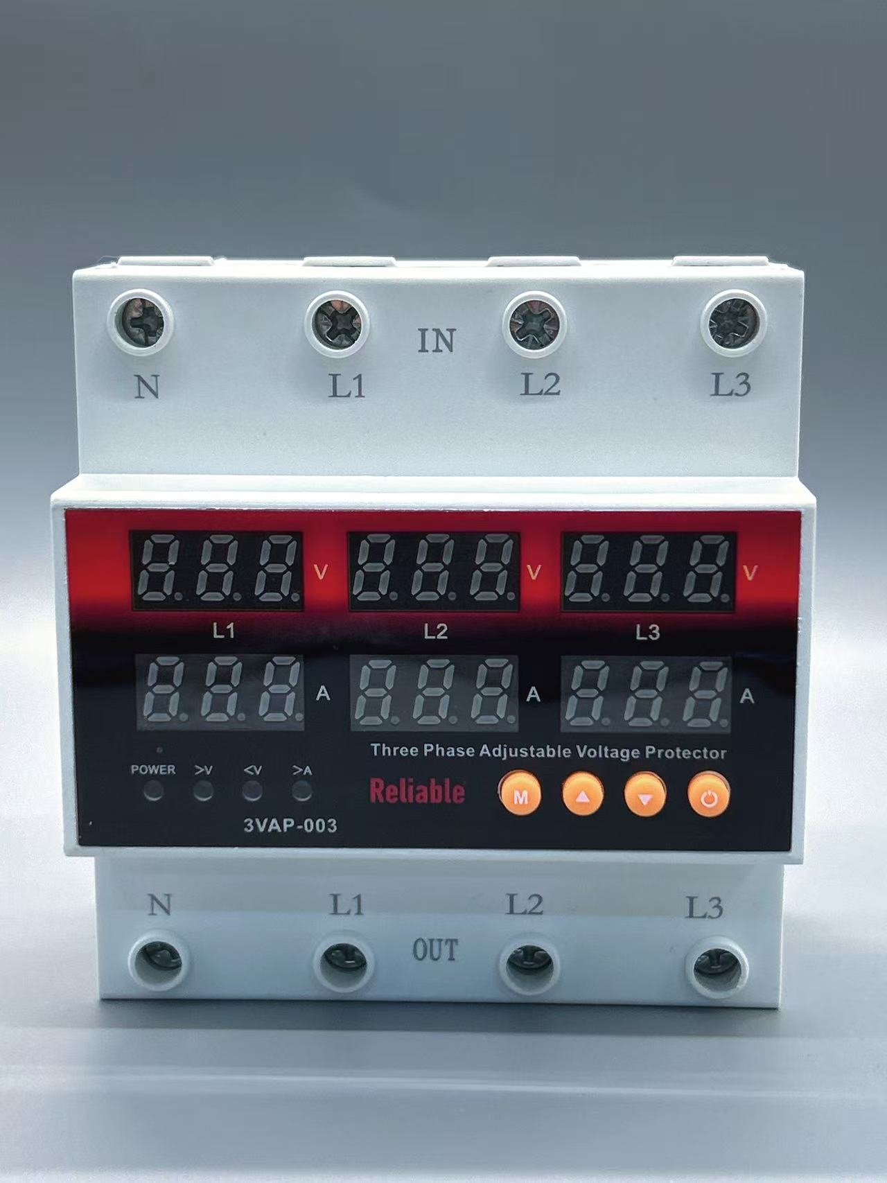 3 Phase 63A, VA Black Control Device, Reliable Din rail, adjustable Over Under Voltage, current limit protection, Relay, VA Protector 4P By Reliable Electric