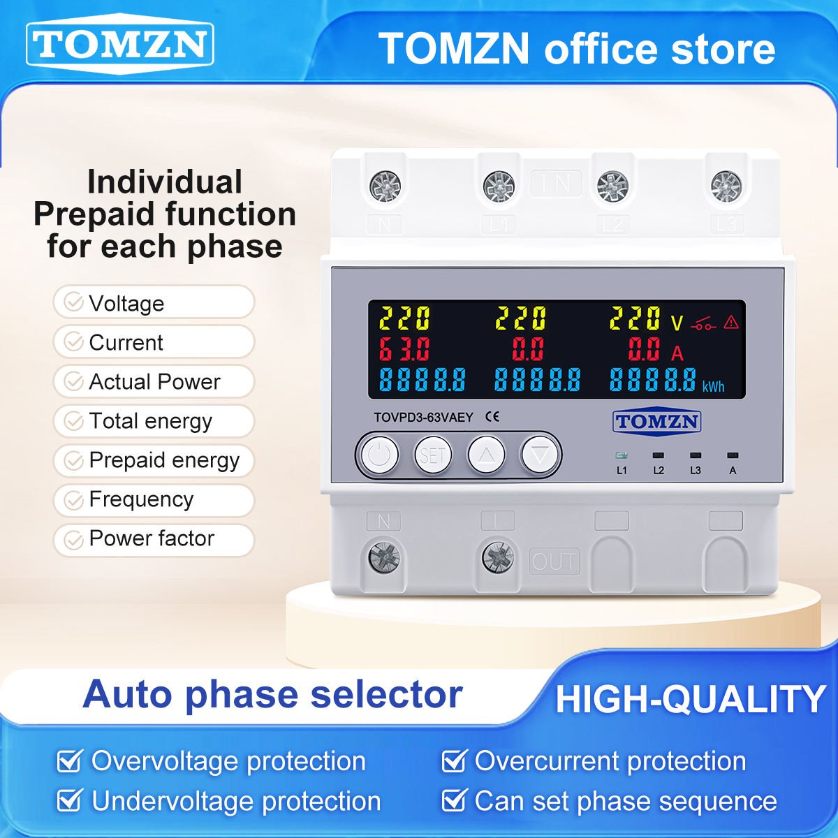 Reliable Electric is offering: Wifi Auto Phase Selector, TOMZN, Three-phase Separate Prepaid Function 63A 3P+N, Adjustable Over Under Voltage Current Protection Monitor, Din Rail Auto Phase Selector, adjustable Over and Under Voltage current protection Monitor Relays Protector adjustable Over Under Voltage, current limit protection, Relay, By Reliable Electric is available at economical rates.
